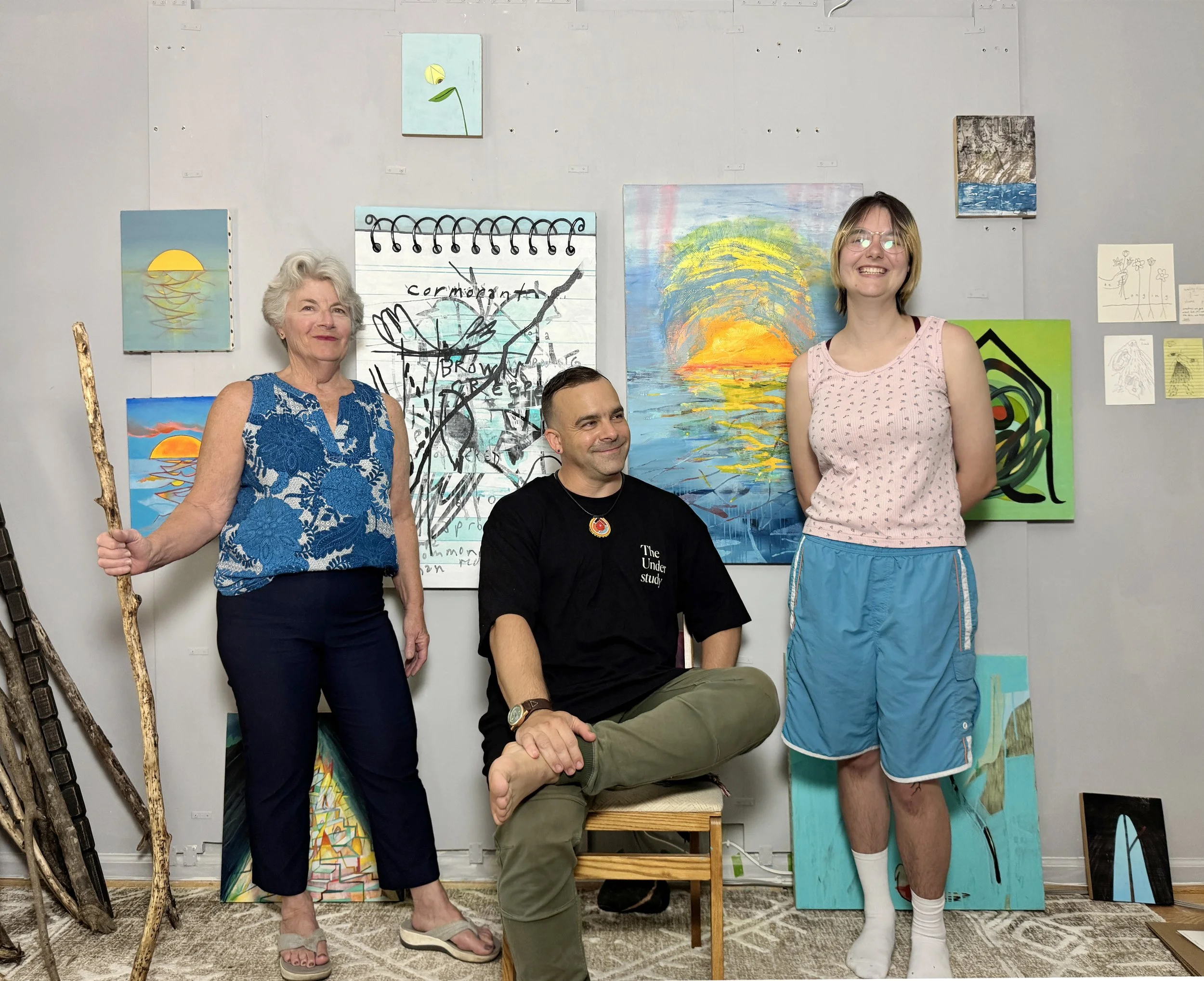 Paula Grossi, Adam Grossi, and Téah Mitchell in the studio, June 2025.