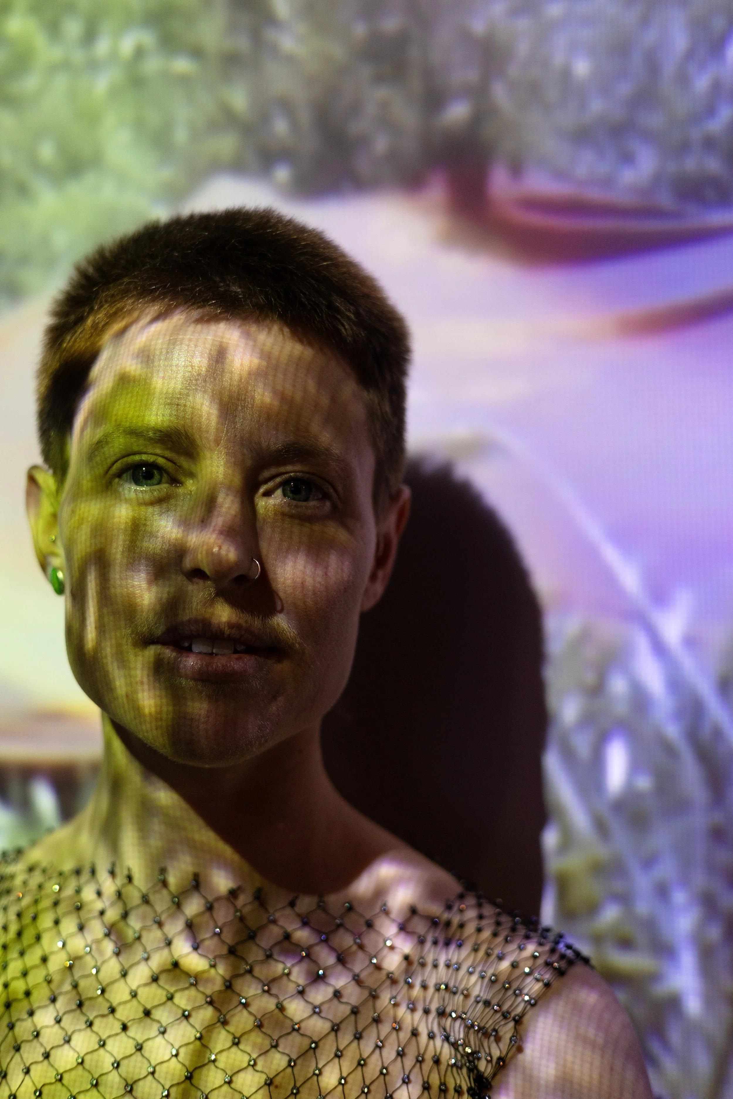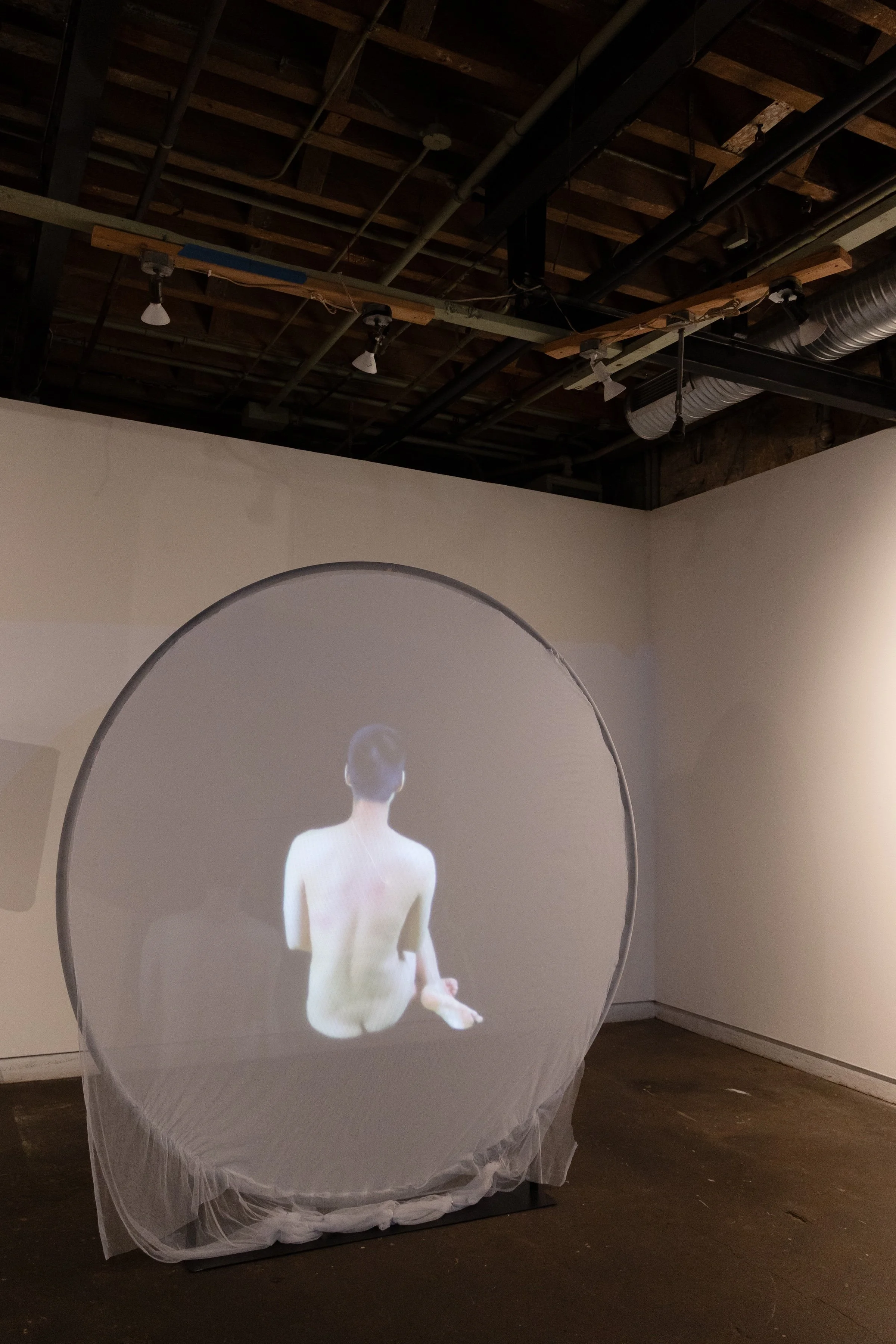 In the cavernous industrial space of Area 405 we see the way this question unfolds for renowned queer visual artists, musicians, drag queens, and scholars Eli Erlick, Aave, Rahne Alexander, Soleil, Bao Nguyen, Alex D’Agostine, Amy Reid, Pangelica, Bryce Hample, Arit Emmanuela and Max Gregg. The majority of artworks are video projections, many involving the bodies of the artists.